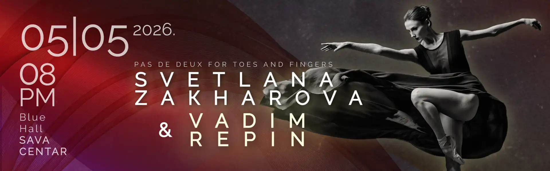 One of the greatest ballerinas today, the only prima ballerina assoluta who still performs on the world's biggest stages, Svetlana Zakharova, and the world-renowned violinist Vadim Repin, a couple in life and on stage, will present their celebrated performance programme ‘Pas de deux for Toes and Fingers’ to the Belgrade audience.