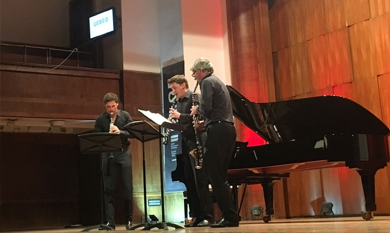 Ансамбл Кларинотс, заједно са пијанистом Кристофом Трикслером, одржао је концерт 20. маја у Коларчевој задужбини. Публици су се представили оригиналним делима као и транскрипцијама за један, два и три кларинета, а на програму су била дела Моцарта, Понкијелија, Шостаковича, Бизеа...